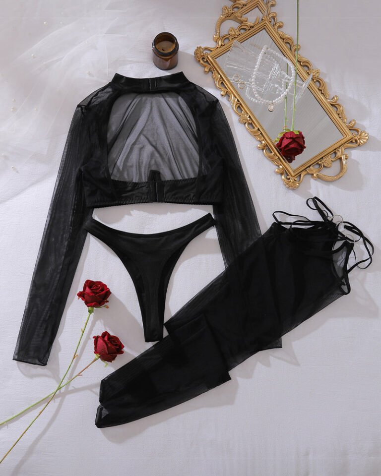 Romantic Mesh Crop Top Sets+Stockings
