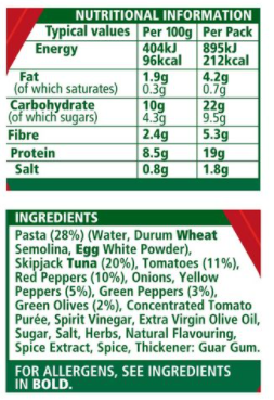 Lunch on the Go Mediterranean Style Tuna Salad with asweet tomato and herb dressing meets tuna. pasta. tomatoes. mixed peppers and green olives to create a festival of flavours.
