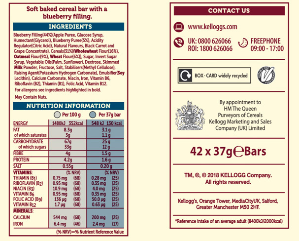 Kellogg’s have squeezed the best bits of breakfast into Nutri-Grain Fruity Breakfast Bars. Bursting with fresh flavours. they’re perfect for busy mornings. Each bar consists of a soft golden baked crust made with wheat. wholegrain oats. barley and a fruity filling.