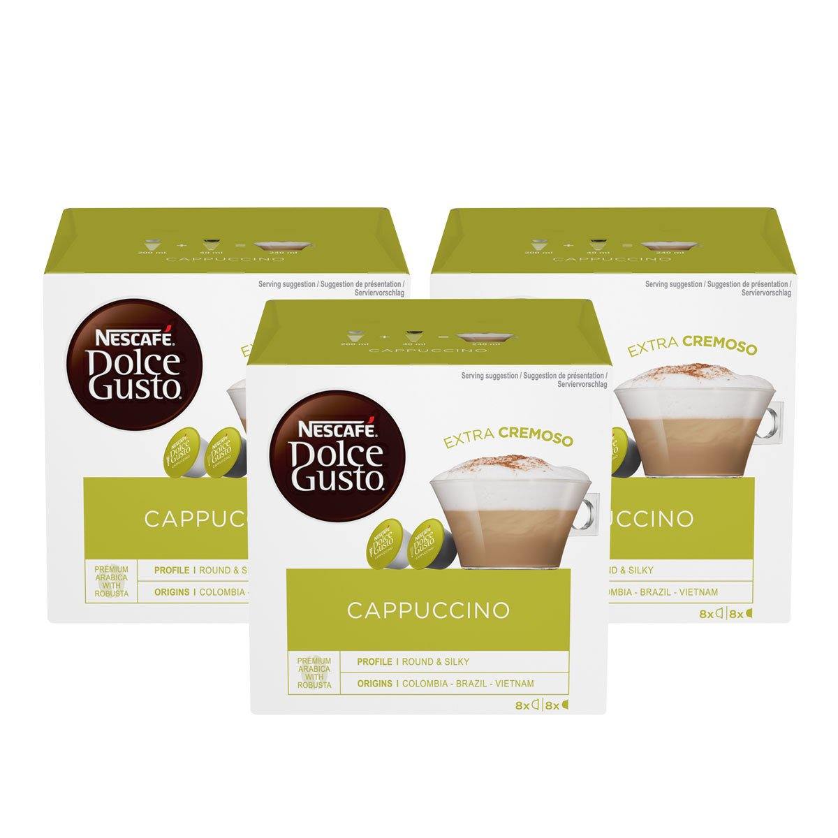 NESCAF Dolce Gusto Cappuccino Extra Cremoso Coffee Pods, (3 x 8) Pack 24 Servings
